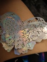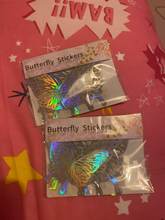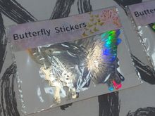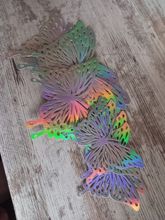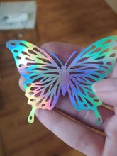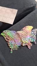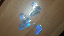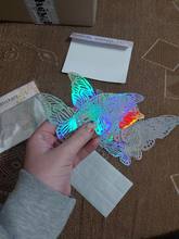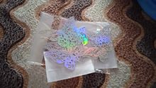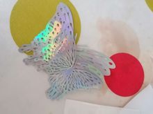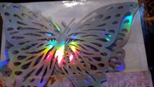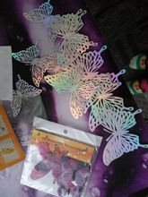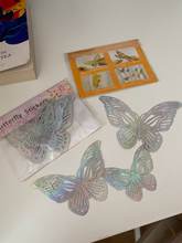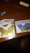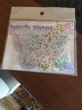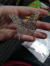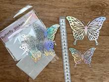 Beautiful holographic, cardboard butterflies. We reached St. Petersburg in the total parcel for 3 weeks. Product and store recommend.