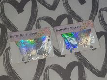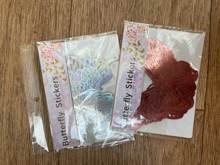 Butterflies are identical to those in the photo, it comes with glue to apply the butterflies to the surface you want. They arrived very quickly, I recommend the store, thank you very much!