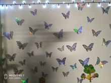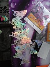 Butterflies are hard enough, 12 PCs, three sizes. two-sided Scotch is, for fixing beauty. Gallogram is good, shimmering, if there is anything. so as the decor is not even bad! but on the plots where there is light, they are better from the the the
