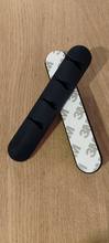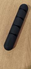 Very comfortable thing. Helps to put order in wires. Double-sided tape. Very nice surface. Packed well. Delivery within a month.