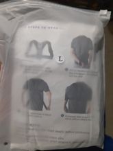 Fully corresponds to the description. Very convenient posture corrector. Excellent quality. L size on chest girth 100 cm Male. T-shirt size m. For a low woman with a size of 46-48 is suitable corrector m.