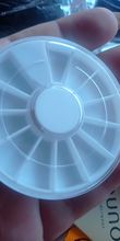 Comfortable small organizer. It is convenient to work with small rhinestones. There is a hole to open one cell and not scatter the rest.