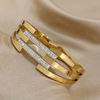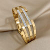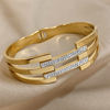 Stainless Steel Rhinestone Inlaid Wide Cuff Bangles