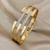 Stainless Steel Rhinestone Inlaid Wide Cuff Bangles