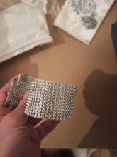 Pas trop brillant, froissé dans un revêtement métallique, sur un substrat en silicone. Je ne le porterai probablement pas. En général, ils ont l'air à leur prix)