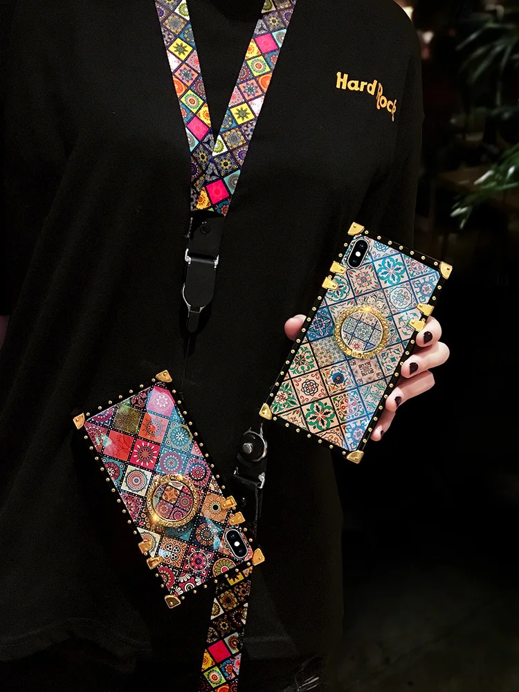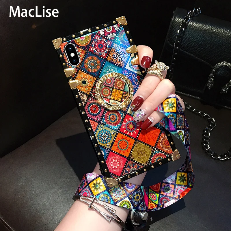Luxury 3D Bracket Ring Blu-ray square Phone Case For IPhone 11 12 Pro X XS XR MAX 6 6s 7 8 Plus SE2 Silicone Soft Cover