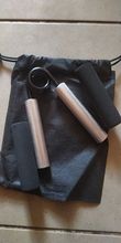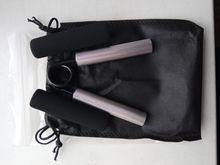 Excellent grip, as described, opposes good resistance. Well built, strong and durable materials. Don't wet the handles, you don't have to. Just insert the rubber tube into the steel bar a little bit and give it small bumps with the palm of the hand at the other end of the rubber and it is penetrating, little by little no difficulty. Recommended article.