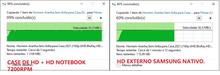 Did the test with a HD case external Notebook and was between 61mbps and 63mbps. With a HD Samsung native was between 92mbps the 93mbps. However in other Test before this arrived Mbps. I have a USB 3.1 port on my PC it yet tested to see if it gets better, however recommend cable strongly!