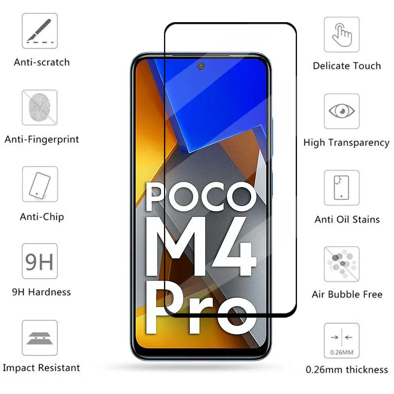 These glasses do not fit on a standard case for Poco M4 Pro 4G keep in mind! The cover has a large bulge on the screen...