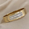 This bracelet is designed for women who want jewelry that combines style, durability, and sophistication. Its wide cuff silhouette is ideal for stacking or wearing solo, making it a versatile addition to any jewelry collection. The sparkling zircon accents elevate your look, while the gold-plated finish provides lasting quality.