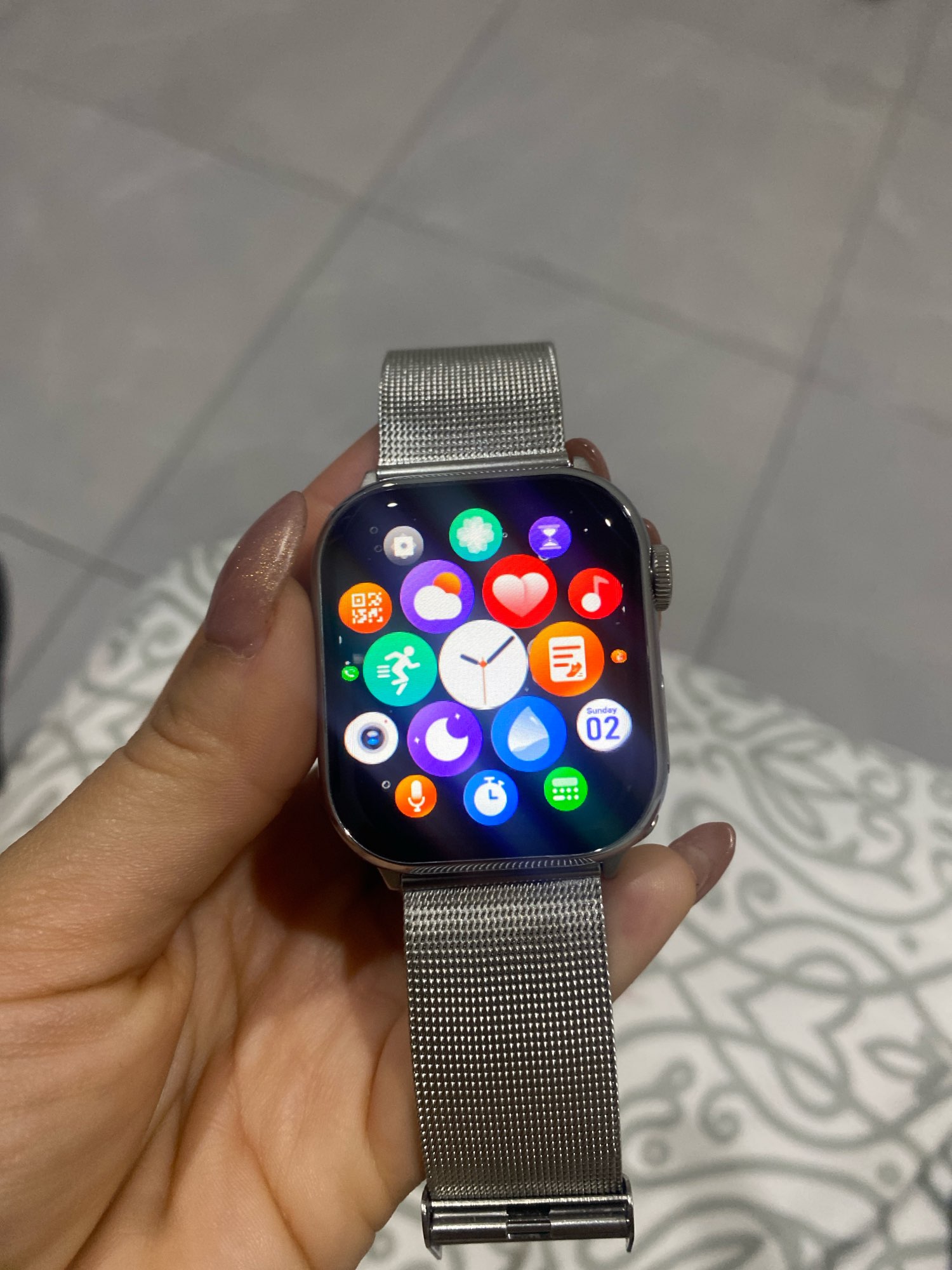 No need for an Apple Watch! This is more than enough! You can use Apple Watch bands or covers with it~ You can set your own favorite display~ The text isn't just for mornings, it's perfect.