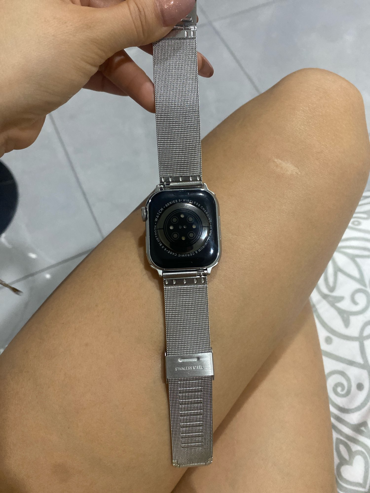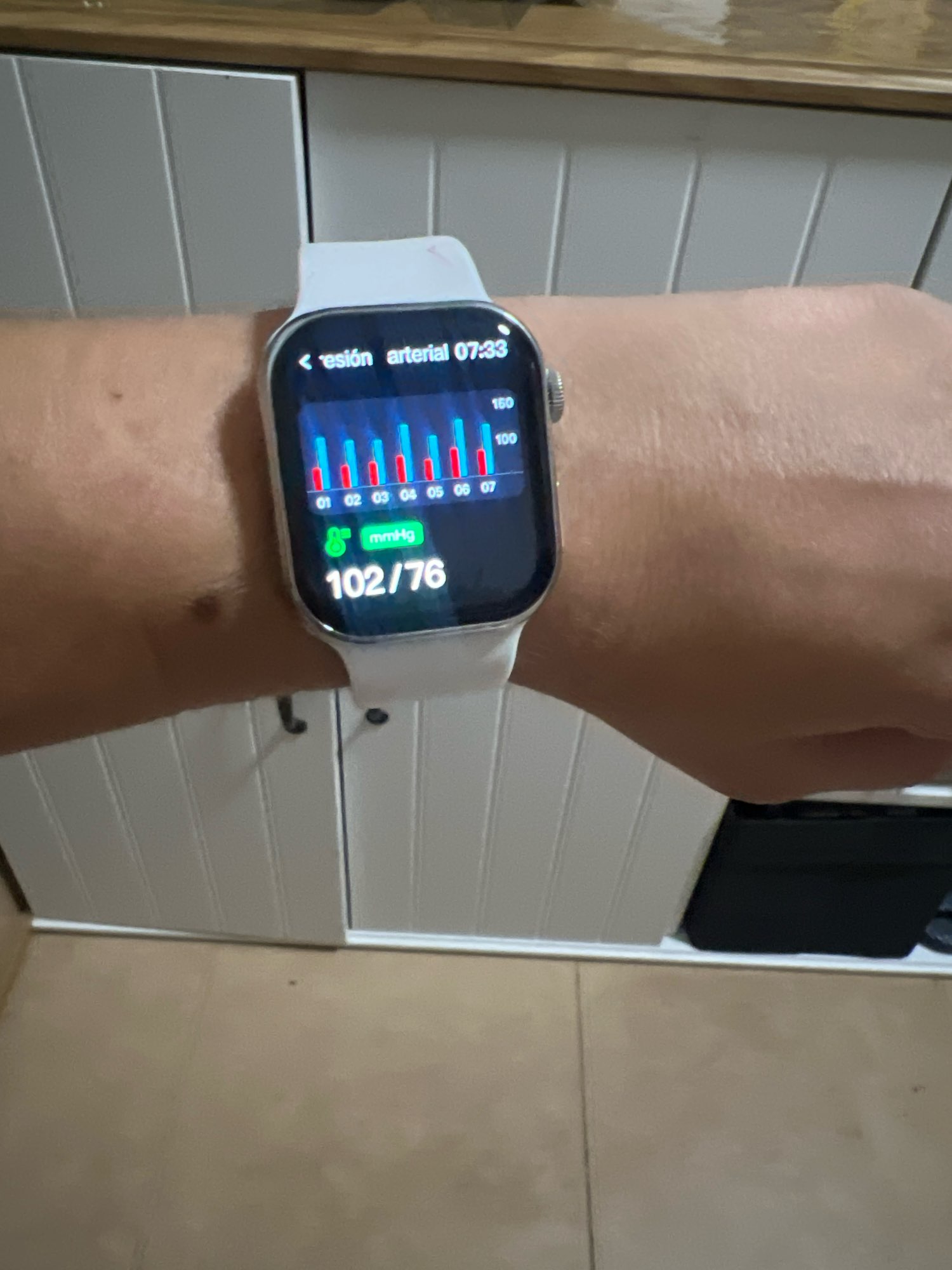 It arrived with two straps, the white one and this steel one. It was easy to connect it to my phone. I have a very small wrist and it fits a little loose but not uncomfortable at all. I was also worried about the screen size that it would look too exaggerated but, although it's big, it looks good, I think. In summary, I really liked it for the price, I bought it on sale for $578 Mexican pesos already with taxes and everything.