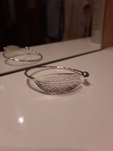 Very beautiful bracelet on hand! looks like a real silver! easy to go. looks chic on the wrist of the hand. I bought the same earrings to be a full set! I recommend!