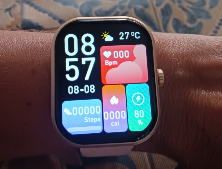Low-end entry-level watch that I expected. The magnetic charger, in my opinion, won't last. I won't risk taking it in the shower even though it's stated to be waterproof. Everything is easy to connect and synchronize; the interface is smooth but you can feel that it's a watch that won't last. We pay the price.