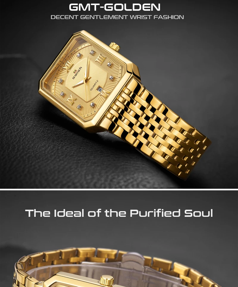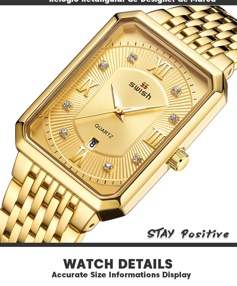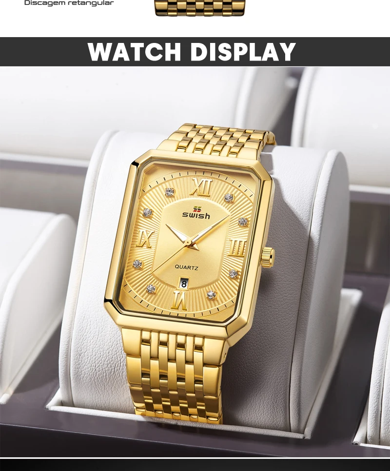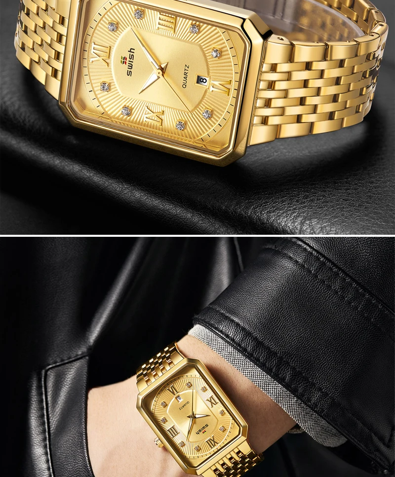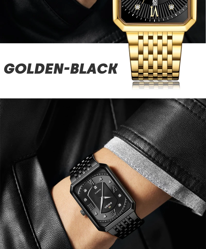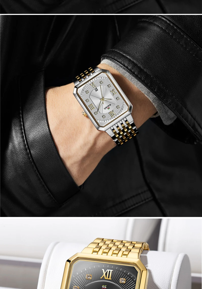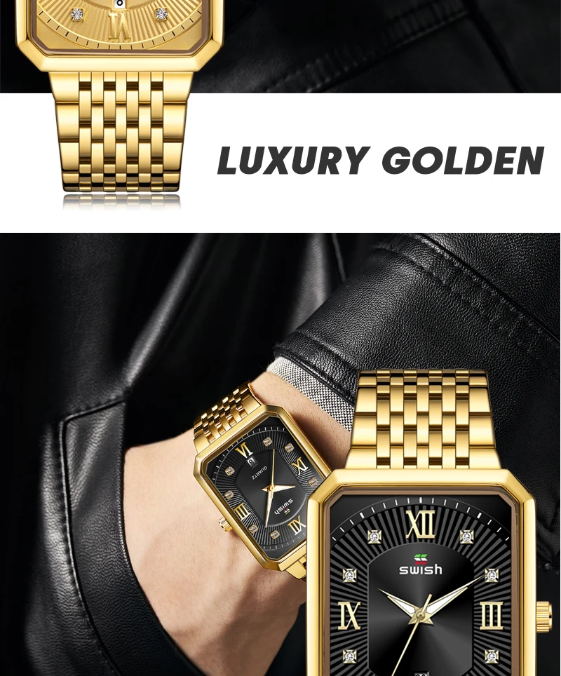 Luxury Fashion Rectangle Waterproof Wristwatch for Men