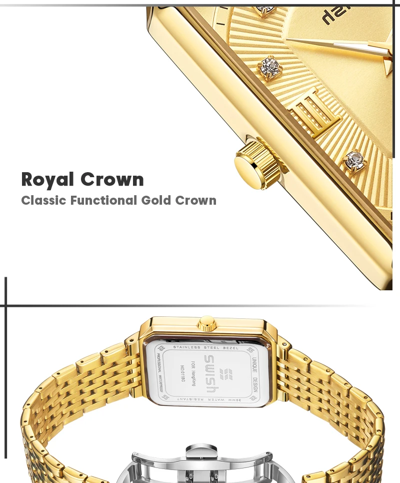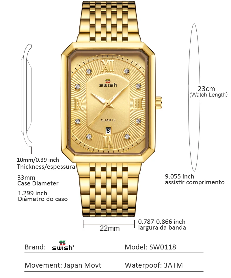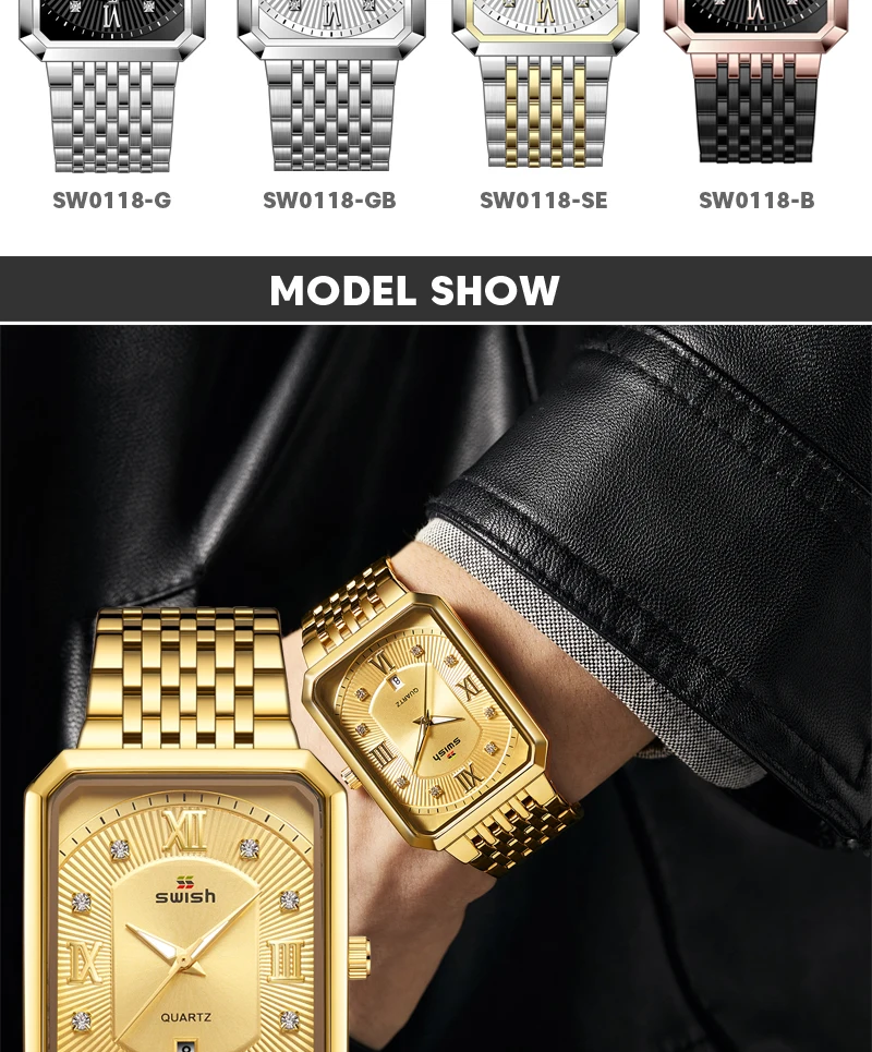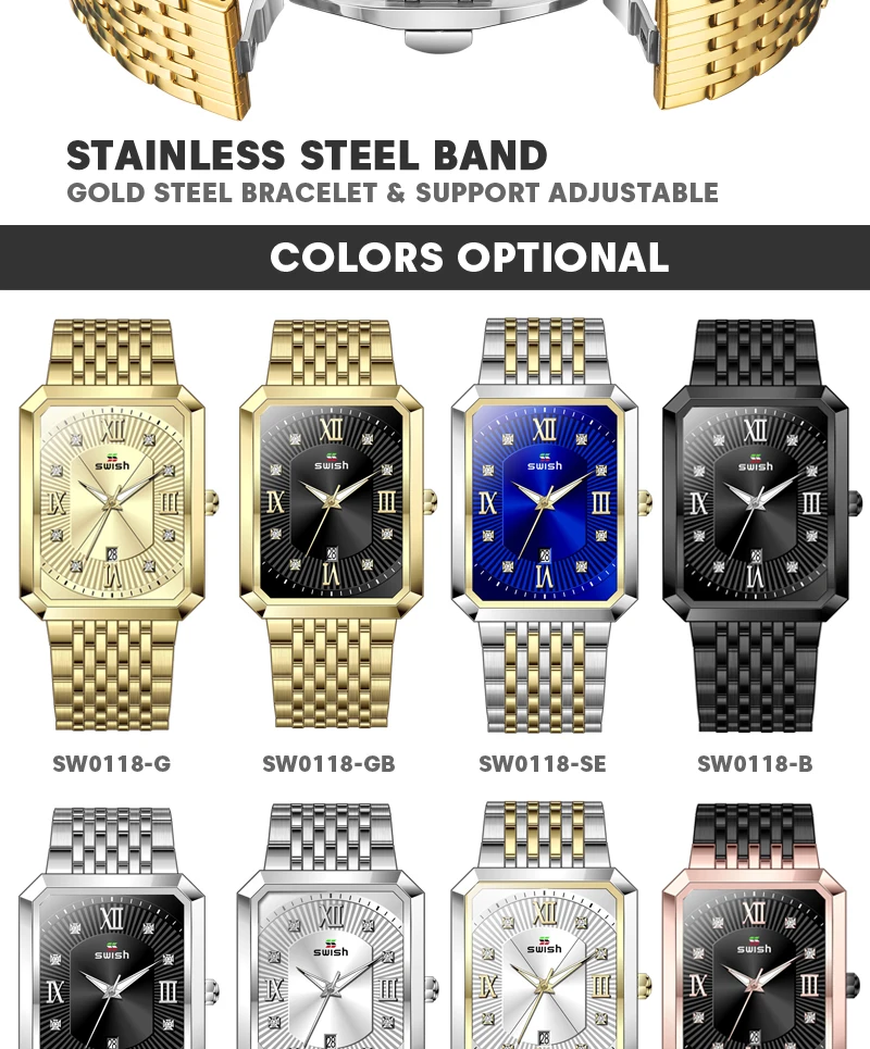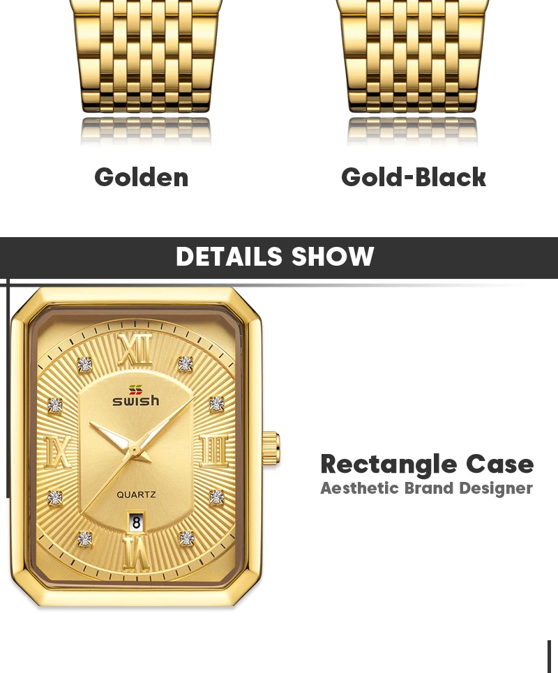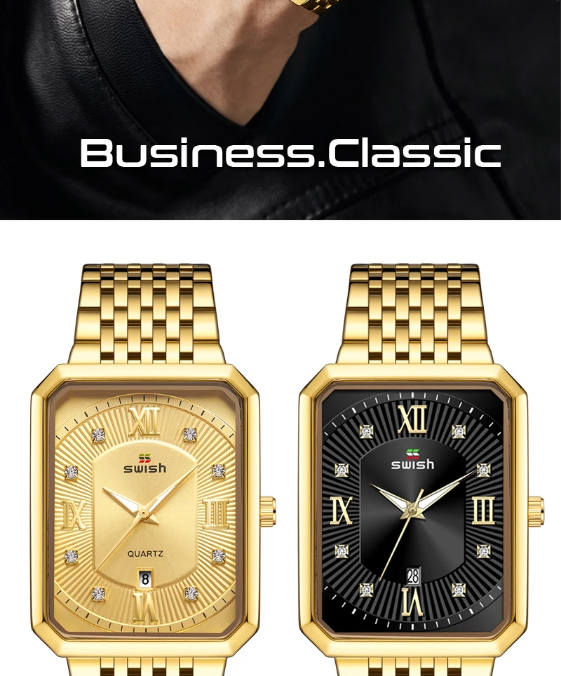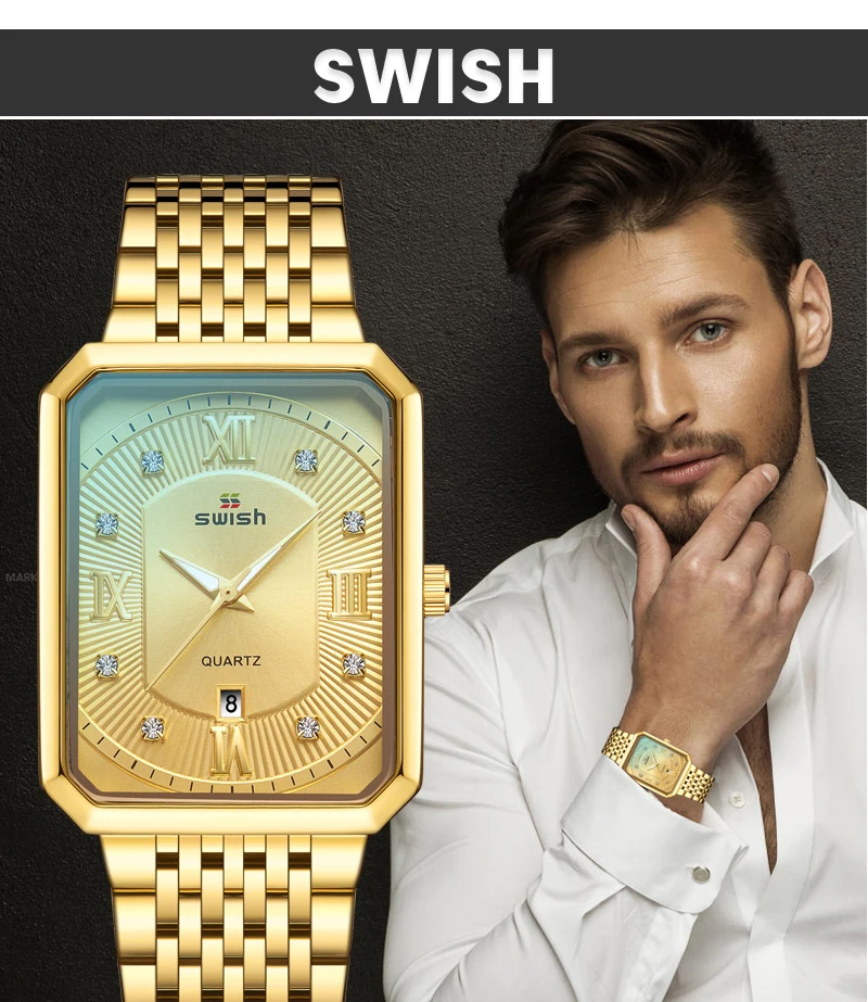 Luxury Fashion Rectangle Waterproof Wristwatch for Men