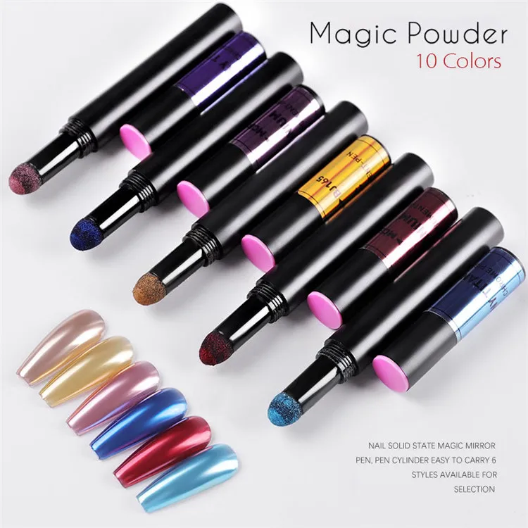 Magic Mirror Nail Powder Cushion Pen Nail Art Glitter Holographic Laser Effect Solid Chrome Pigments Nails Accessories