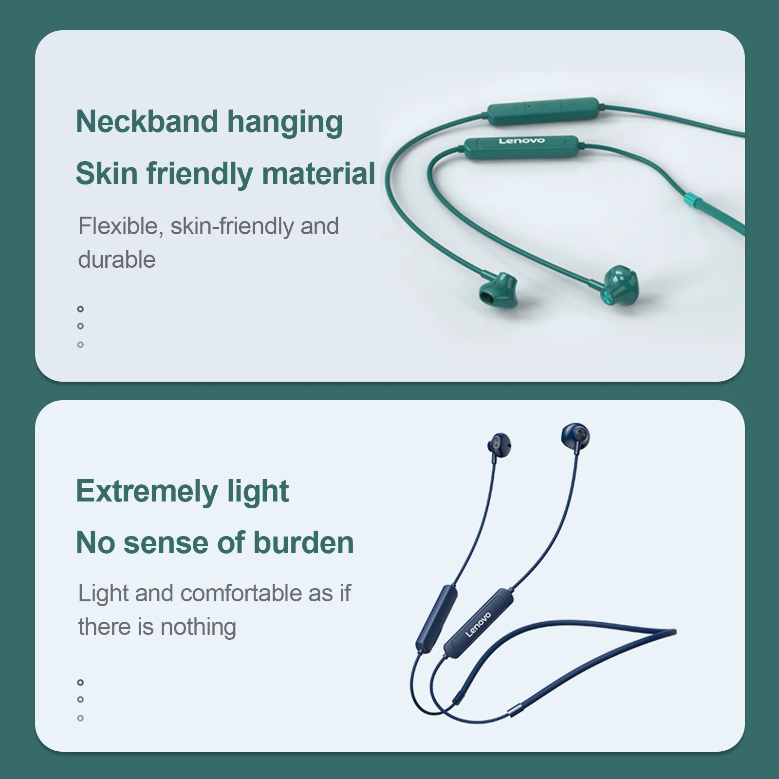New Lenovo SH1 Wireless Earphone Bluetooth 5.0 Chip HIFI Sound Quality IPX5 Waterproof Sports Headset Magnetic Neckband Earbuds