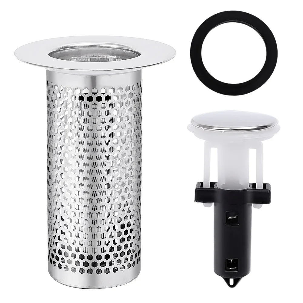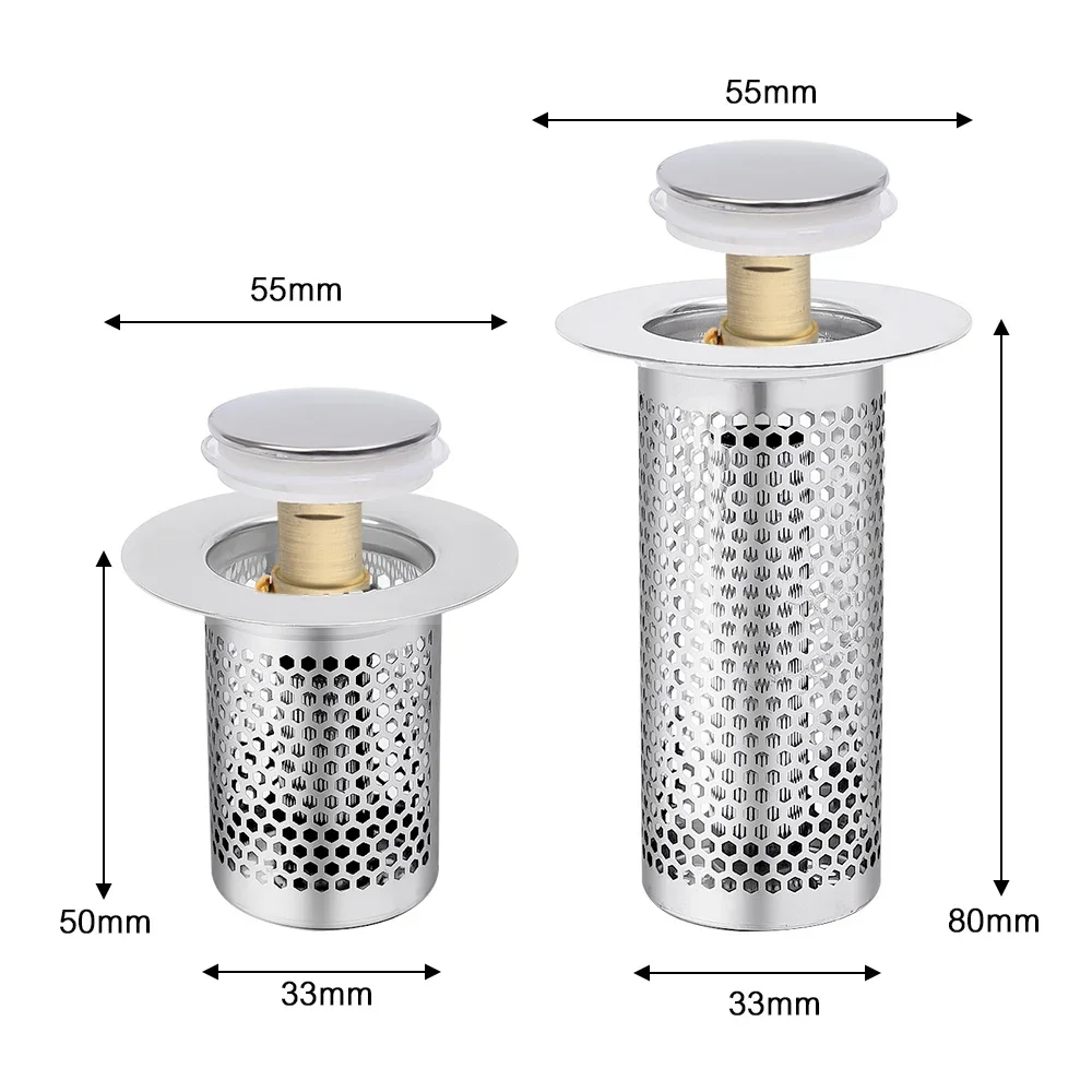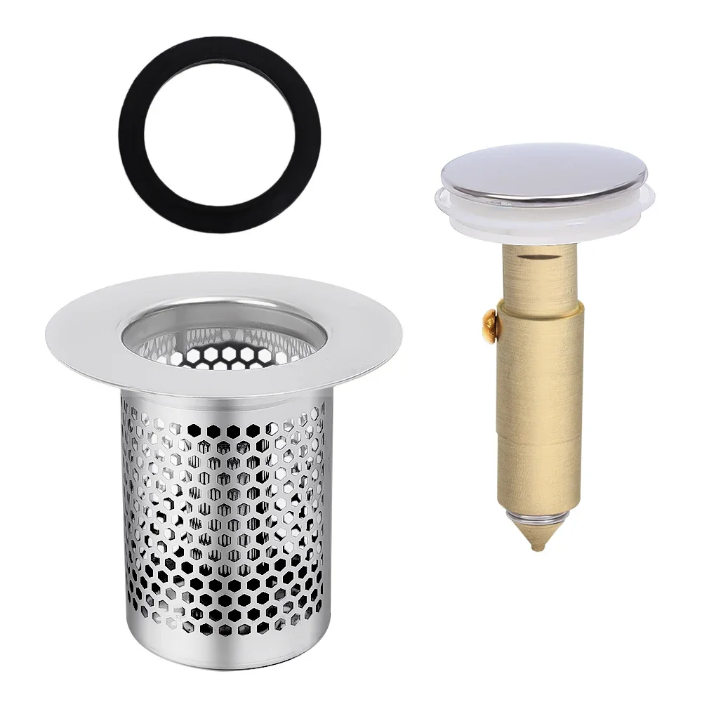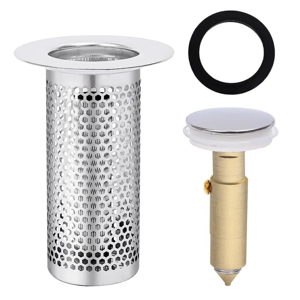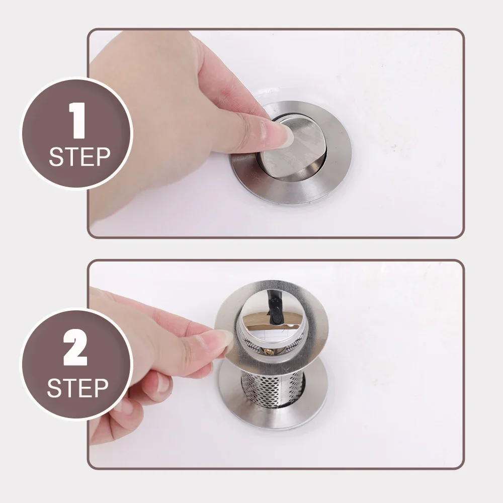 Ultra-Efficient Anti-Hair Stainless Steel Catcher & Pop-Up Basin Stopper – Odor-Free, Mess-Free!