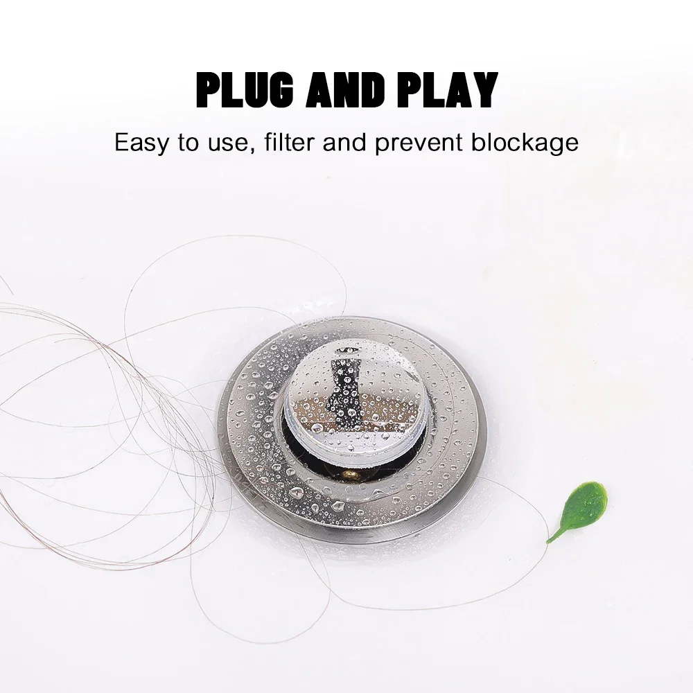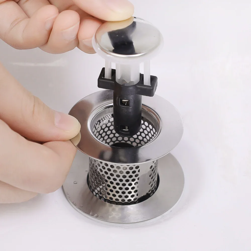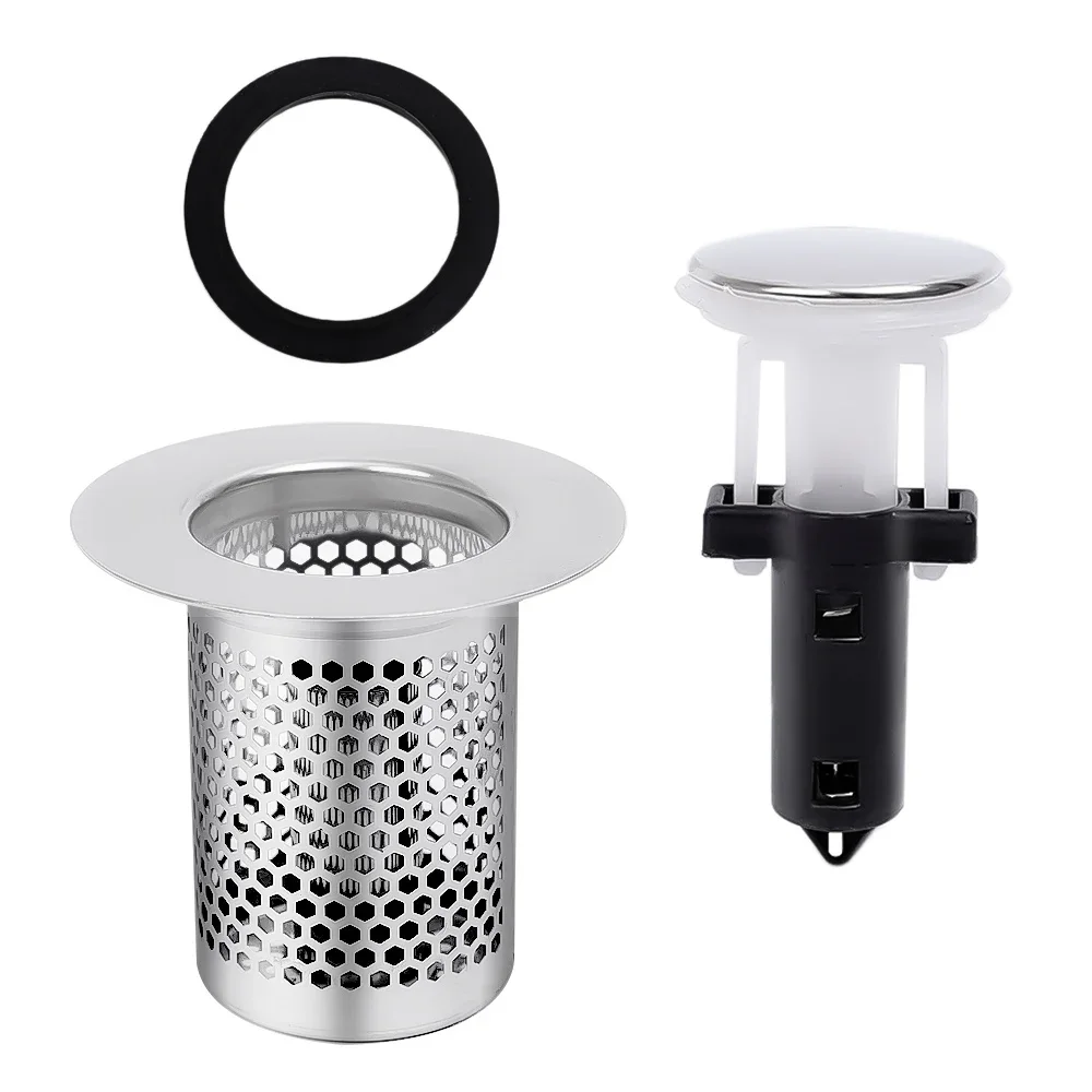 It works as both a hair catcher and a pop-up drain stopper, letting you control the water flow with a single press. Perfect for soaking, washing, or quickly draining water.