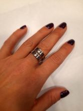 So lovely ring, seems like he is easy to snag. Is more metallic than silver…