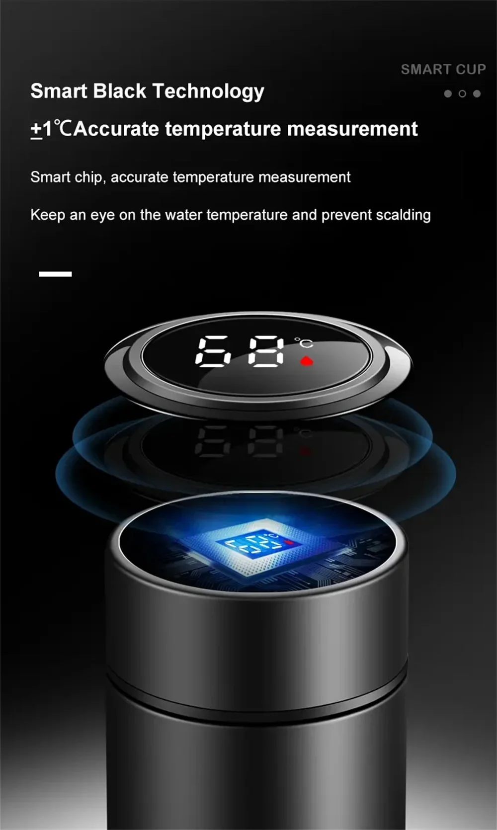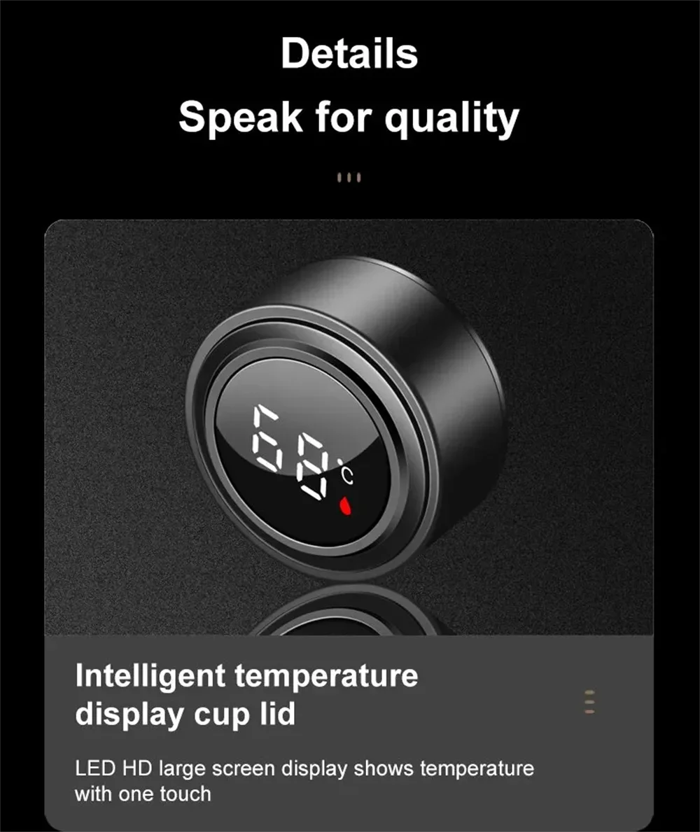 1. LED Temperature Display: The digital screen on the lid provides an accurate temperature reading with a simple touch, so you know exactly when your drink is at the perfect temperature.
