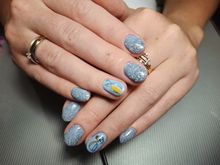 Lacquer just "wow"! I never thought that a cheap coating with Ali can compete in quality in Prof. Brands, and it's like... the photo is purely for the sake of demonstration, the coating is not dried even, but it already looks bomb-free. I'm delighted)