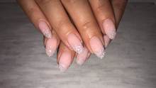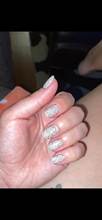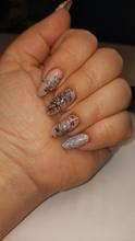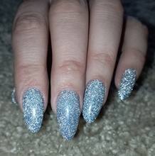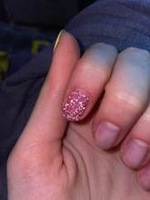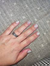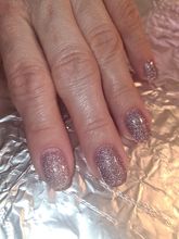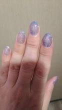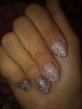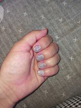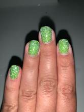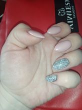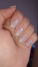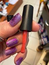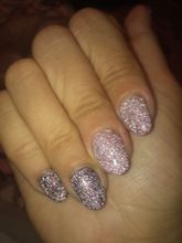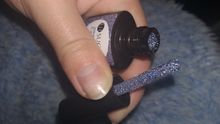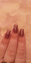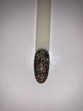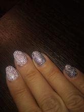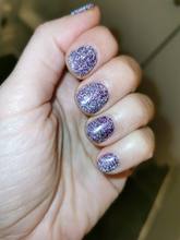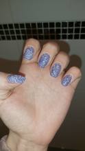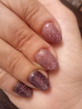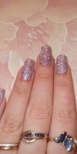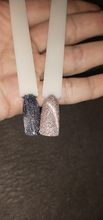 Le vernis est beau, avec de petites paillettes, il n'y en a pas autant que sur la photo. 1,2 fois c'est exactement suffisant pour couvrir