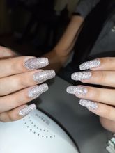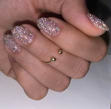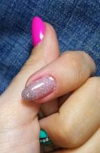 The bottle is tiny 7 '5 ml, but it feels less. The bottle is completely made of plastic, I have not seen it before. Glitters beautifully) took on a sample, I did not have great hopes) painted in 2 layers on the milk type. Glitter is not enough) but in general, everything is good. Delivery 2 months to the Roman territory, the track was not tracked.