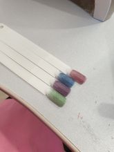 Pedí 5/05 y llego hoy 19/05. Son tal y como describen en la foto, pedí 3 neones, dos que brillan en la oscuridad, dos efecto azúcar y uno de glitter
