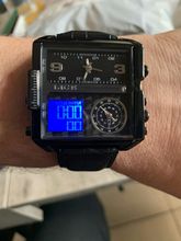 I'm a watch afficionado, and I love unique watches. This was a pleasant surprise. Heavy duty, unique. Analog 12 -hour, analog24 hour and digital. Band is sturdy, Love the black face. big men, this would be proportionately ideal. Everything was perfect. By the way, this watch could have sold for twice as much considering its uniqueness.
