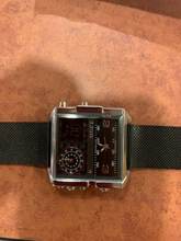 Article conforme, trois affichage de l'heure sans lien entre eux, sur l'affichage numérique pas de système 24h possible. Une fonction chronomètre trouvé. Bracelet métallique plié d'un côté malgré la boîte ( défaut à l'usine probablement)