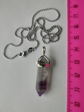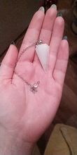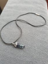 It is a fluorite pendant I'm happy because it arrived quickly given the current conditions (containment 2). The pendant lacks color it is bland to my taste but hey the shape is nice.