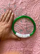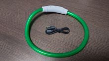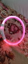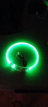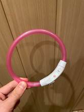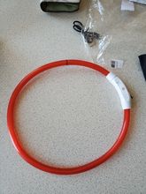Thank you for the fast delivery. The collar is a little different from what I bought earlier on this platform. For comparison added the one I use now. My dog is small, but the volume of 35 cm is not enough to wear freely through the head, I bought 50 cm. But the clasp is quite bulky and I don't know if it will be comfortable after I cut it short. But glows well and brightly. The color is transmitted cleaner than on the one I have.