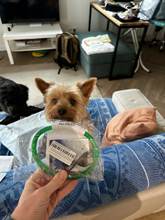 Great This bright necklace. It is easily adjustable if it is too long. To plus tous The instructions are in the package. Xs for a miniature dachshund was too big so I have little to adjust it.