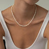 Slightly longer than in the photo, looks more like a necklace, not a choker. But still beautiful, thank you!