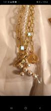The necklace looks slightly different than in the photo (the length of the chains is about the same). But it looks great for such a price.