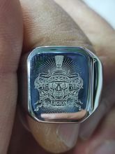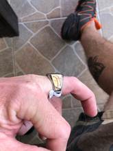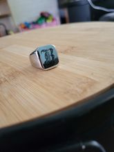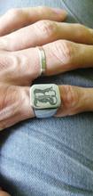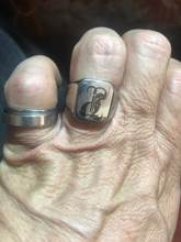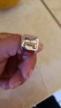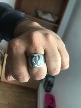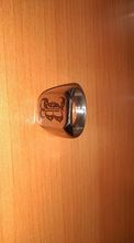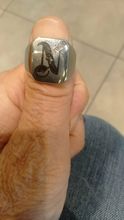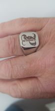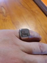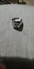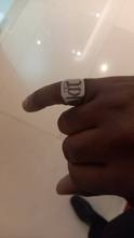 The ring came expeditiously and for the money is everything OK. Nevertheless I am no fan of false product pictures. The ring is in no way engraved as the gives a picture to suspect, merely printed or lasered. Also is the letter neither properly Black still as sharp as advertised, man recognizes hardly details. See photos.