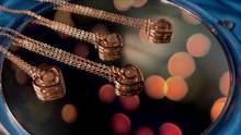 Cool pendant. The length is adjustable. On a black turtleneck looks very beautiful) the inscriptions are visible.