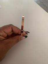 Exactly as pictured. Slightly big on me since I have a small wrist, but otherwise so beautiful. Time will tell if the colour changes.