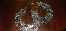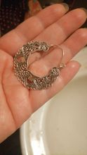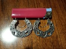 Cool earrings. Large, in the ears is convenient, but heavy. I liked that the patterns are not just painted, but as if knocked out. The Buckle, however, is not very comfortable, but such exactly "accidentally" will not unzip. To buy I recommend) it will be very cool to look with clothes in some Oriental style)