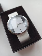 Mega stylish watch! Made in minimalist style Dial transparent, the hour and minute hands. Silver-plated fittings. The strap is made of genuine leather, fits comfortably on your wrist. Clock mechanism quartz. Water resistant-30 m. Watch came to the brand cardboard box, instruction, warranty card, cloth. Very like, recommend