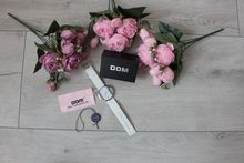 Chic and stylish watch from # Dom Delivery to Ukraine month Packed in a branded box of very dense cardboard. Warranty included. The watch is snow-white. The strap is soft, pleasant to the skin. The first impression is very pleasant. Such a watch is not ashamed to bring as a gift. To buy recommend