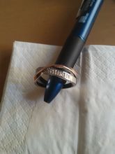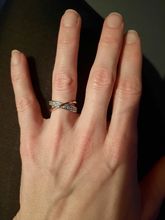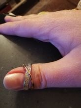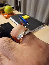 Bague très intéressante, bien faite, semble mieux sur les plus gros doigts.