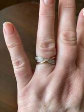 Very beautiful ring. Charming combination of white and yellow gold colors. Fast shipping to mailbox. I took the size 7 to the Russian 17th. Many thanks to the store!